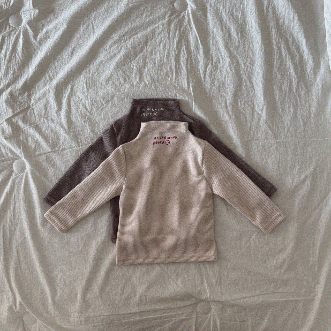 細かいリブ編みでやさしく包み込む、裏起毛のハーフネックTシャツです。
