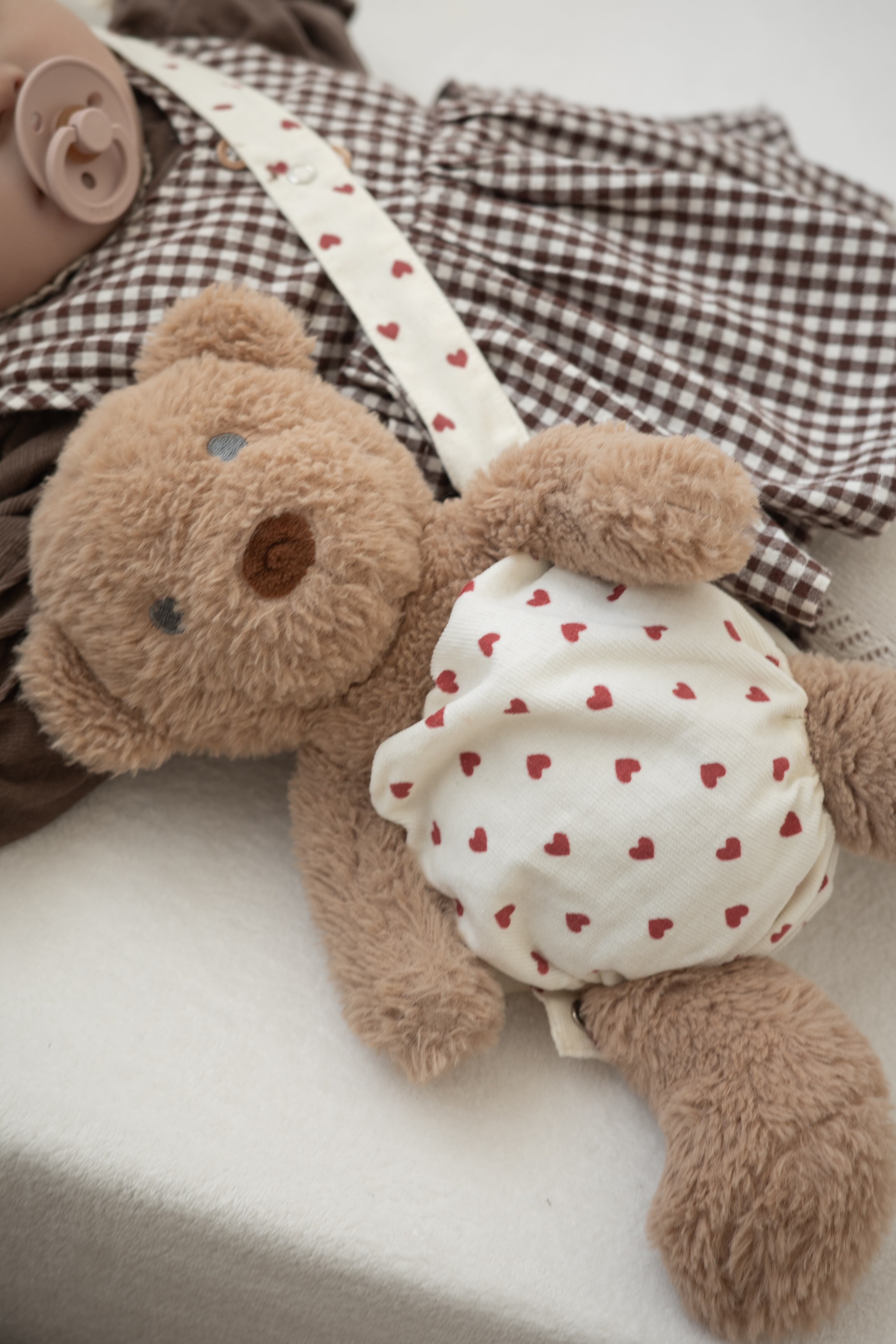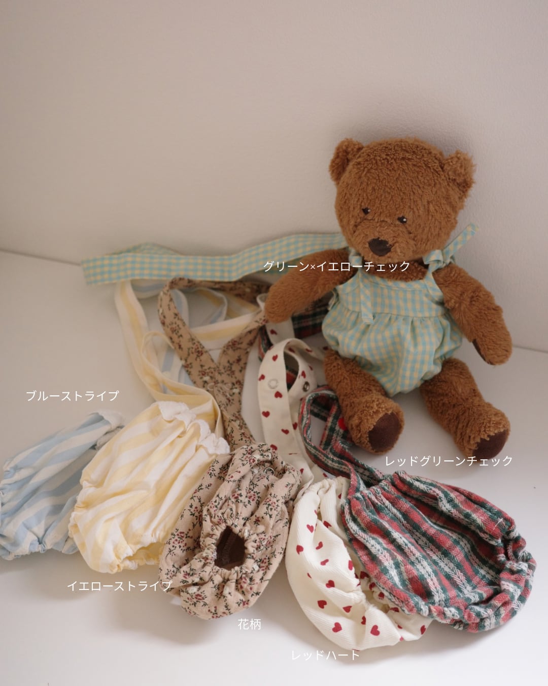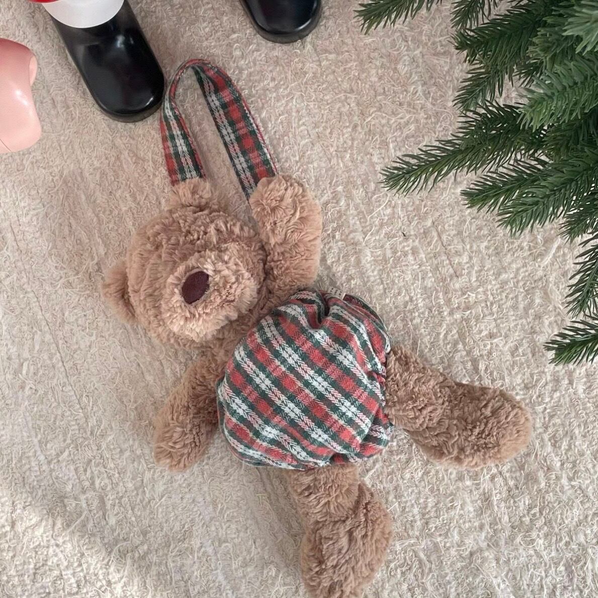 ぬいぐるみのウエスト部分と足元には やわらかいゴム入り。