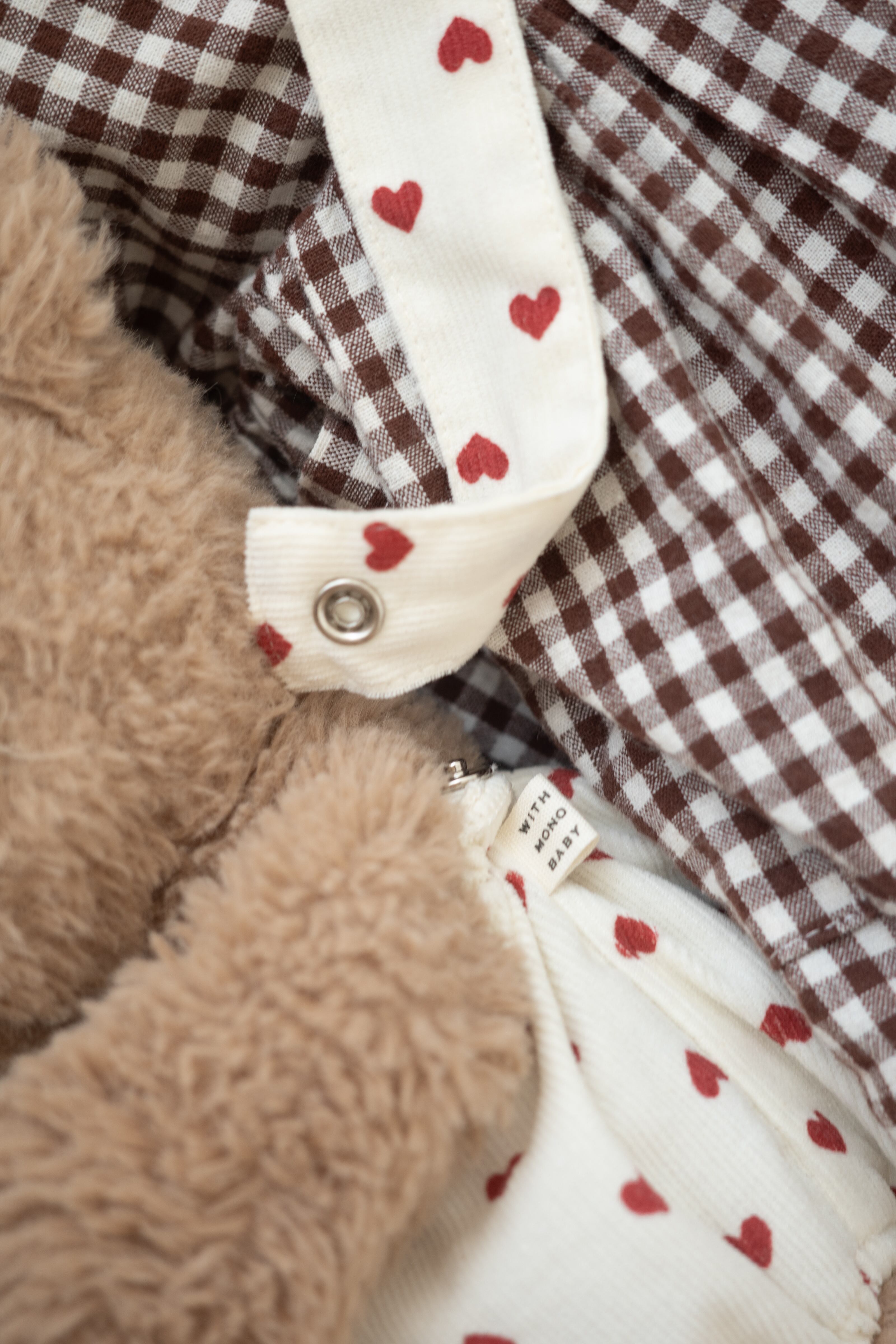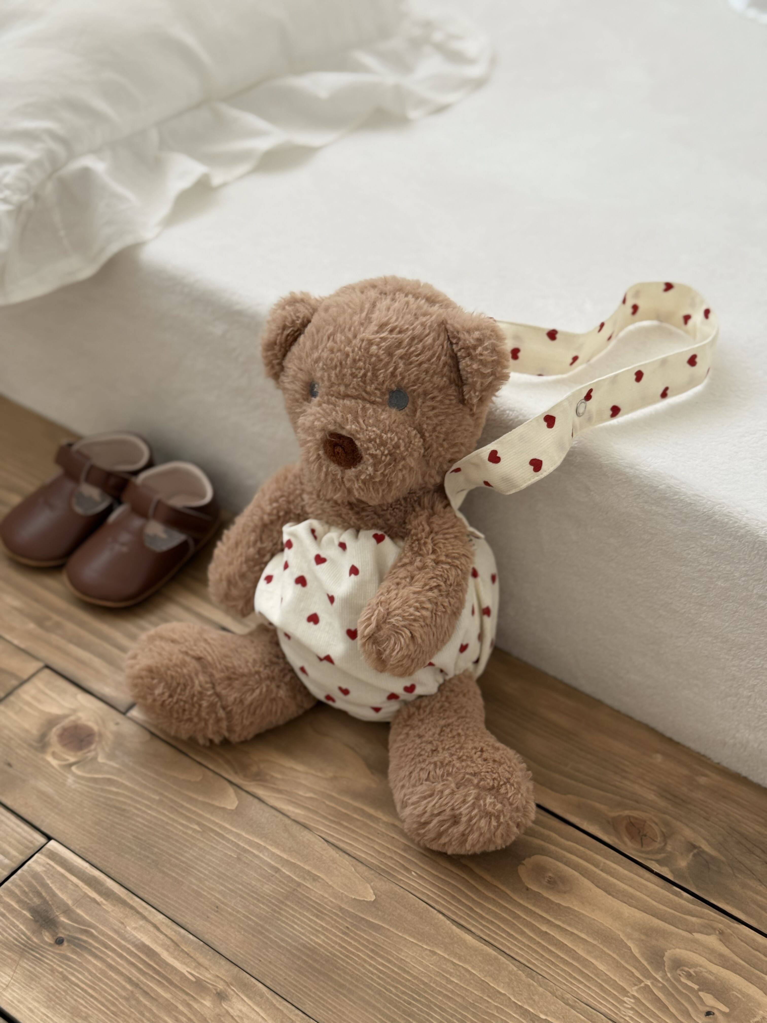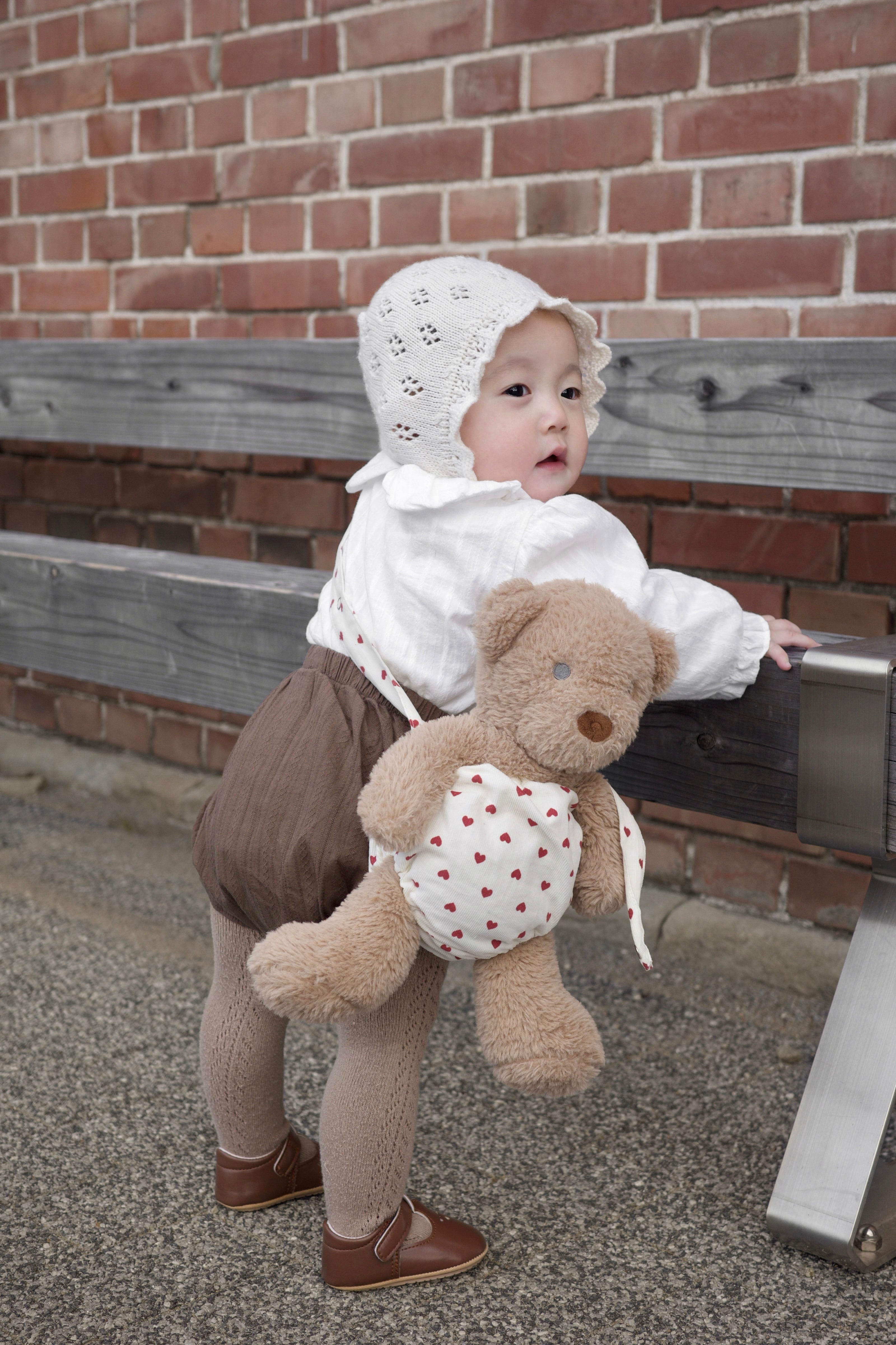 ぬいぐるみのウエスト部分と足元には やわらかいゴム入り。