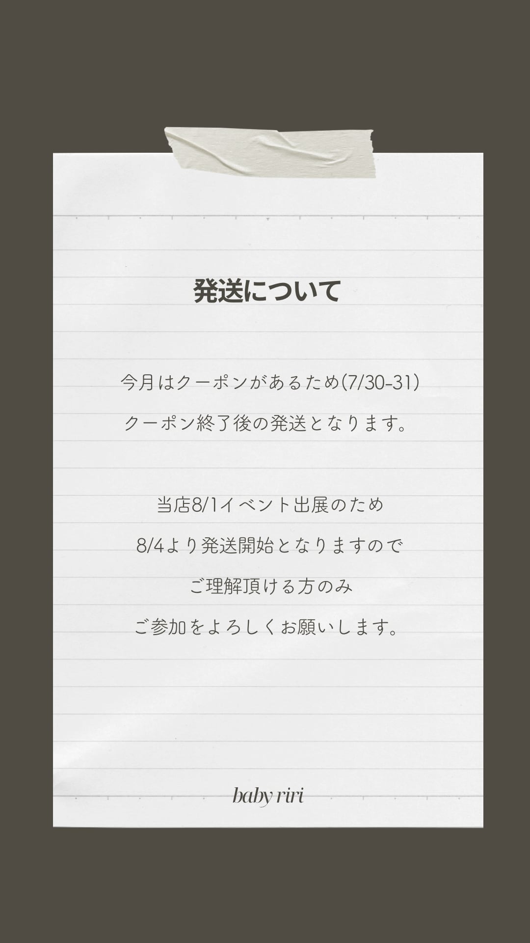 発送に通常よりお時間をいただきますこと、ご了承くださいませ。