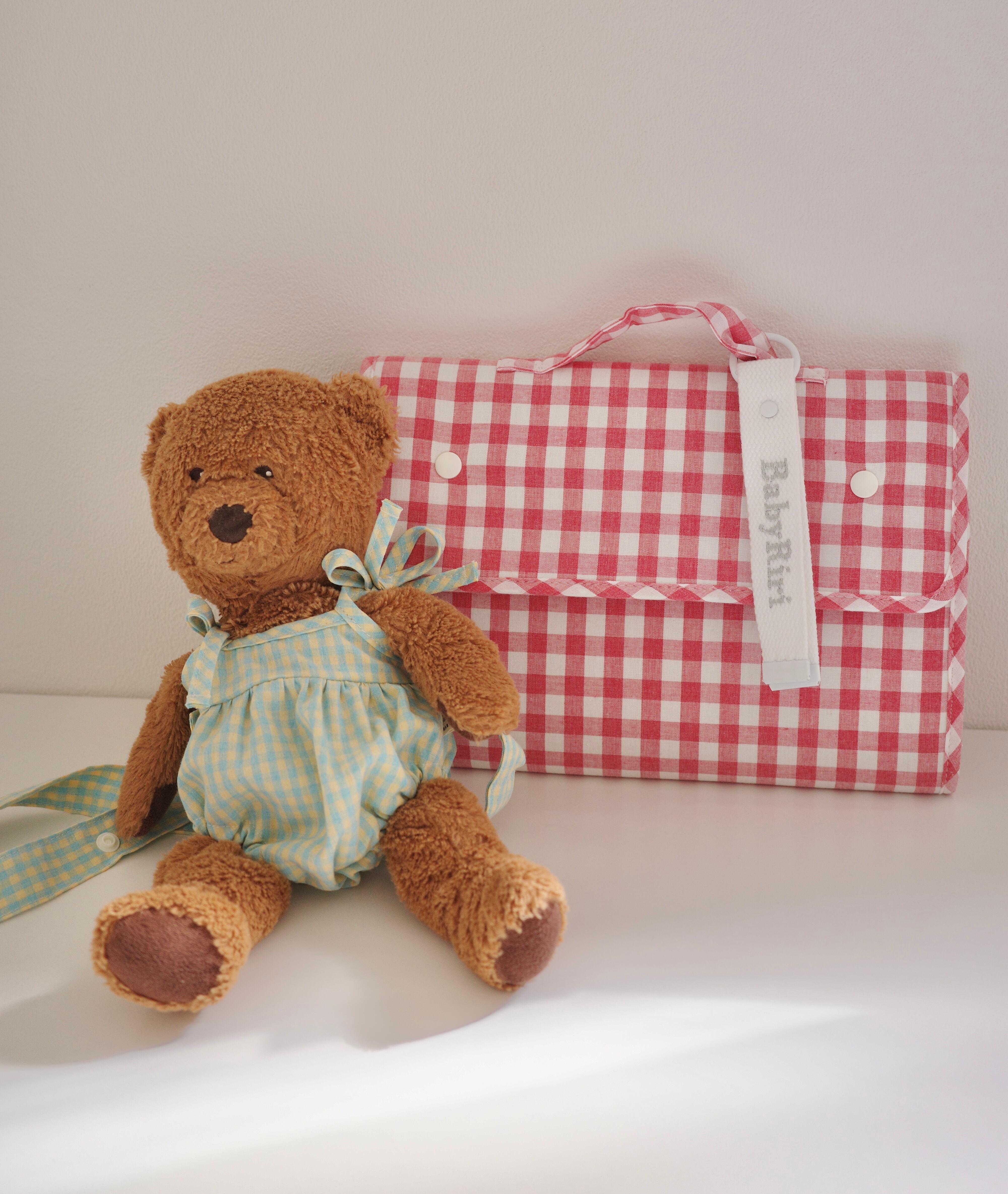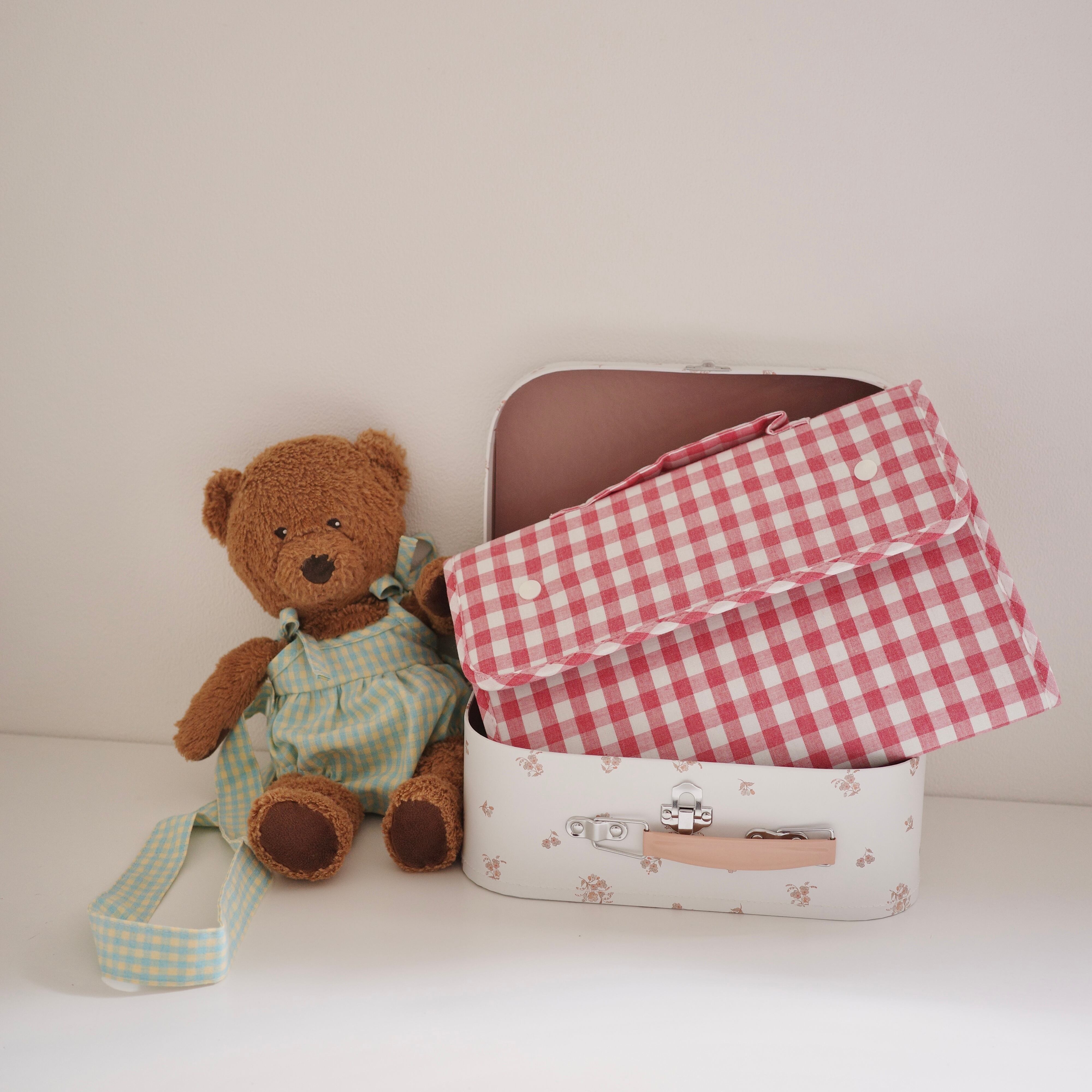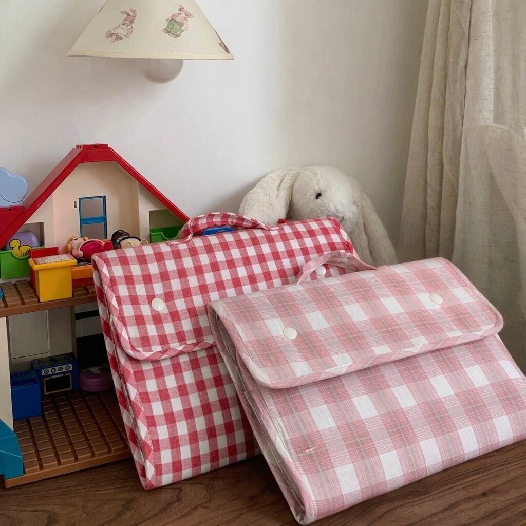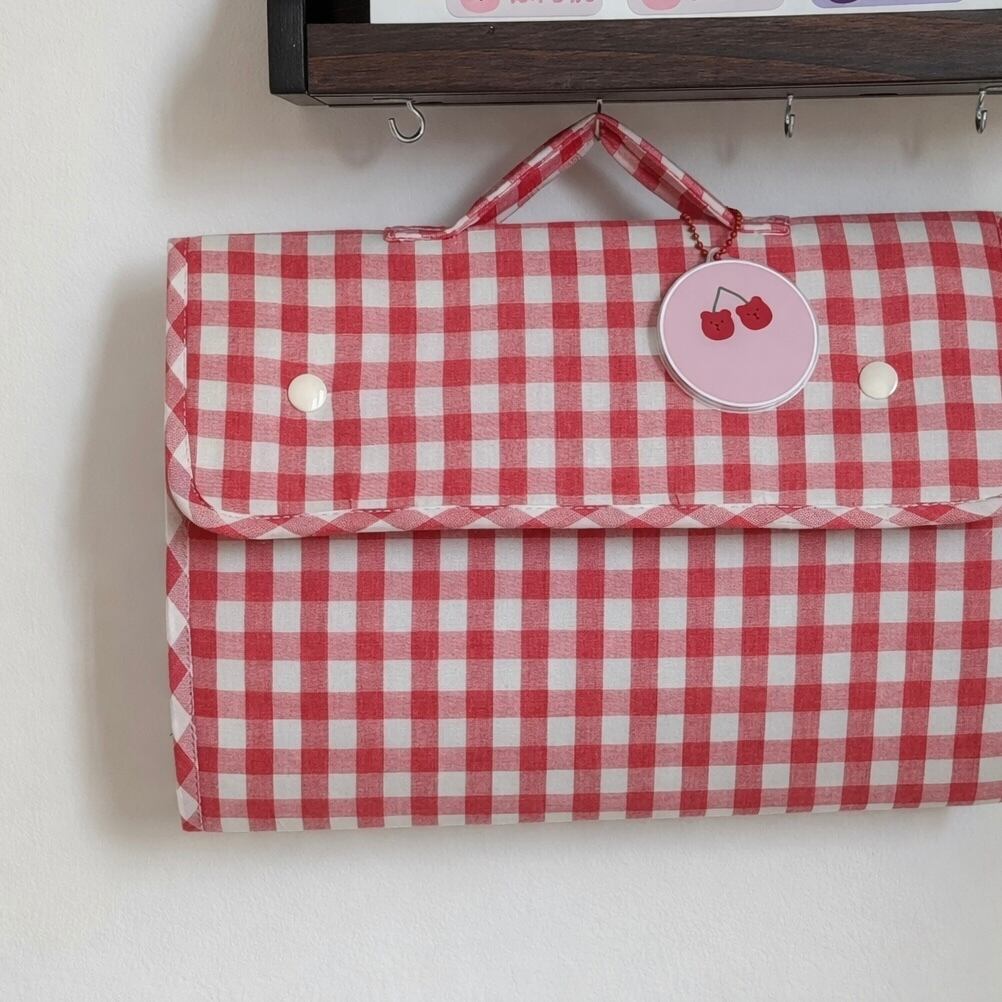 ギンガムチェックのやさしい色合いと、